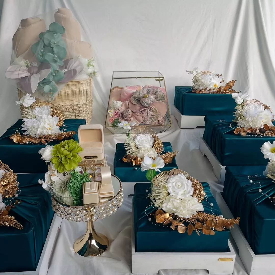 Hidden in The Box dipercaya untuk membuat seserahan tertutup dengan tema warna emerald green dan white.